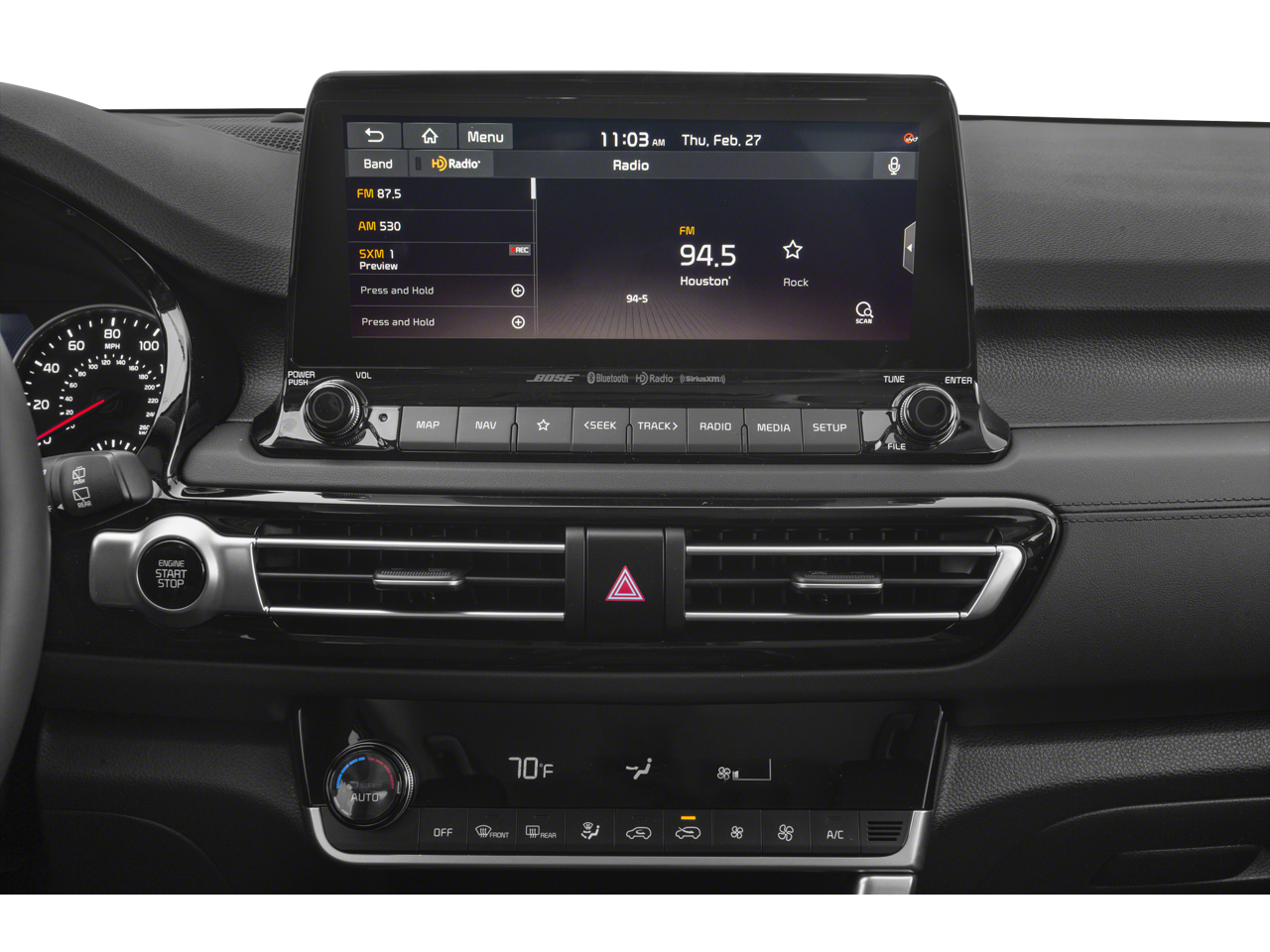 Paint Protection Package, SX Sunroof Package (Sunroof), 18 Alloy Wheels, 4-Wheel Disc Brakes, 4.643 Axle Ratio, 8 Speakers, ABS brakes, Air Conditioning, Alloy wheels, AM/FM radio: SiriusXM, Apple CarPlay & Android Auto, Auto-dimming Rear-View mirror, Automatic temperature control, Brake assist, Bumpers: body-color, Carpeted Floor Mats, Delay-off headlights, Driver door bin, Driver vanity mirror, Dual front impact airbags, Dual front side impact airbags, Electronic Stability Control, Emergency communication system, Exterior Parking Camera Rear, Four wheel independent suspension, Front anti-roll bar, Front Bucket Seats, Front Center Armrest, Front fog lights, Front reading lights, Fully automatic headlights, Heated door mirrors, Heated Front Bucket Seats, Heated front seats, Illuminated entry, Leather Seat Trim, Leather Shift Knob, Low tire pressure warning, Mud Guards, Navigation System, Occupant sensing airbag, Outside temperature display, Overhead airbag, Overhead console, Panic alarm, Passenger door bin, Passenger vanity mirror, Power door mirrors, Power driver seat, Power steering, Power windows, Radio: AM/FM/MP3 Display Audio, Rear seat center armrest, Rear window defroster, Rear window wiper, Remote keyless entry, Security system, Smart Key w/ Push Button and Remote Start, Speed control, Speed-sensing steering, Split folding rear seat, Spoiler, Steering wheel mounted audio controls, Tachometer, Telescoping steering wheel, Tilt steering wheel, Traction control, Trip computer, Turn signal indicator mirrors, and Variably intermittent wipers.