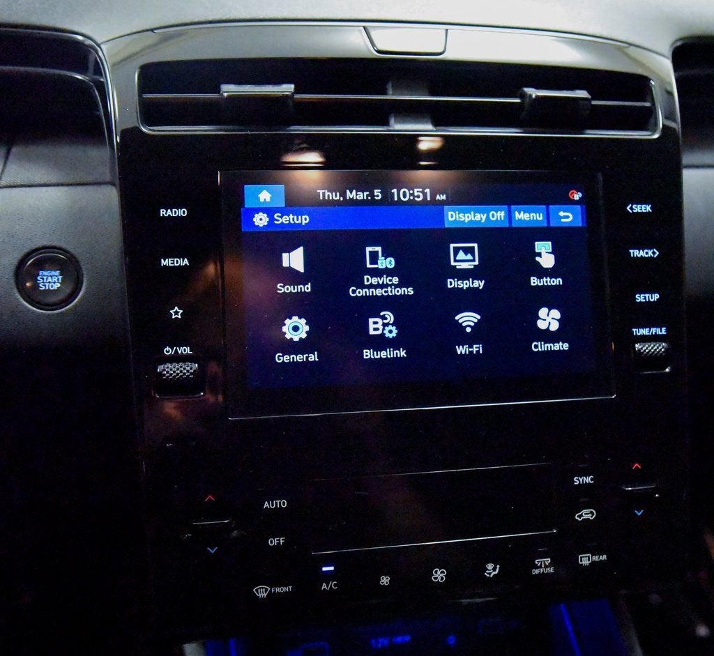 - Radio: Bose Premium w/AM/FM/HD/SiriusXM Audio System -inc: 8" color touchscreen display w/8 speakers (1 twiddler on center of instrument panel, 2 tweeters, 2 front door, 2 rear door, 1 woofer on rear quarter panel), digital 8 channel amp w/custom equalization, digital signal processing and dynamic speed compensation, Blue Link connected car, Android Auto and Apple CarPlay, USB outlets and Bluetooth® w/voice recognition