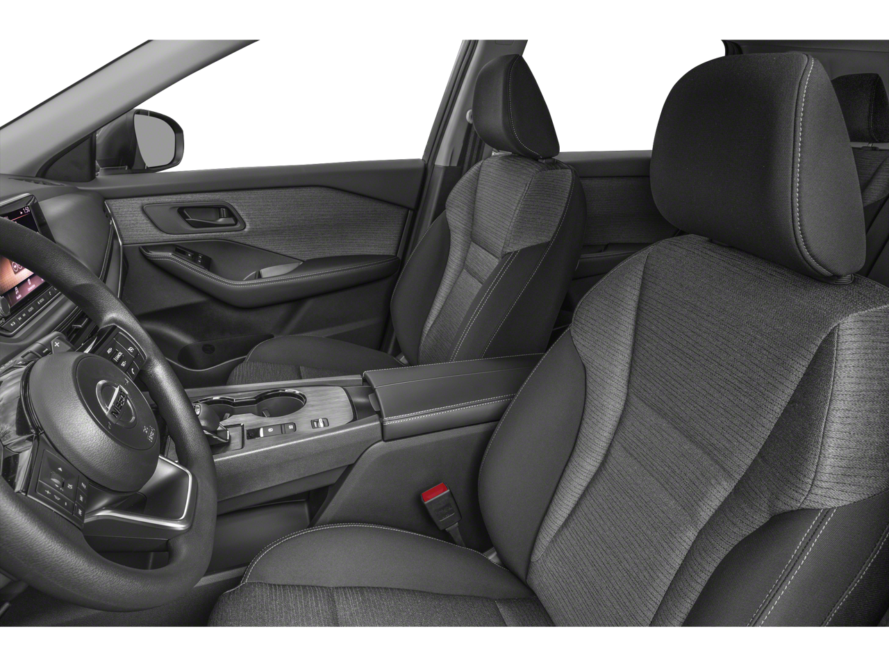 Step inside and you'll be greeted by a host of premium amenities that redefine the driving experience. The Rogue SV's PRIMATEX Leatherette Seat Trim, Heated Leather Wrapped Steering Wheel, and Leatherette Door Trim Inserts with Stitch add a touch of elegance and comfort to every journey. The Panoramic Moonroof floods the cabin with natural light, creating a spacious and airy atmosphere, while the Rear Door Sunshades provide privacy and protection from the sun's glare.