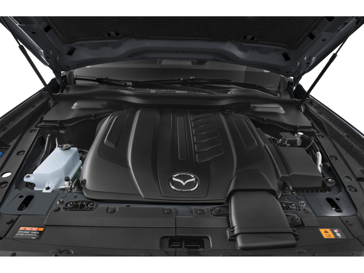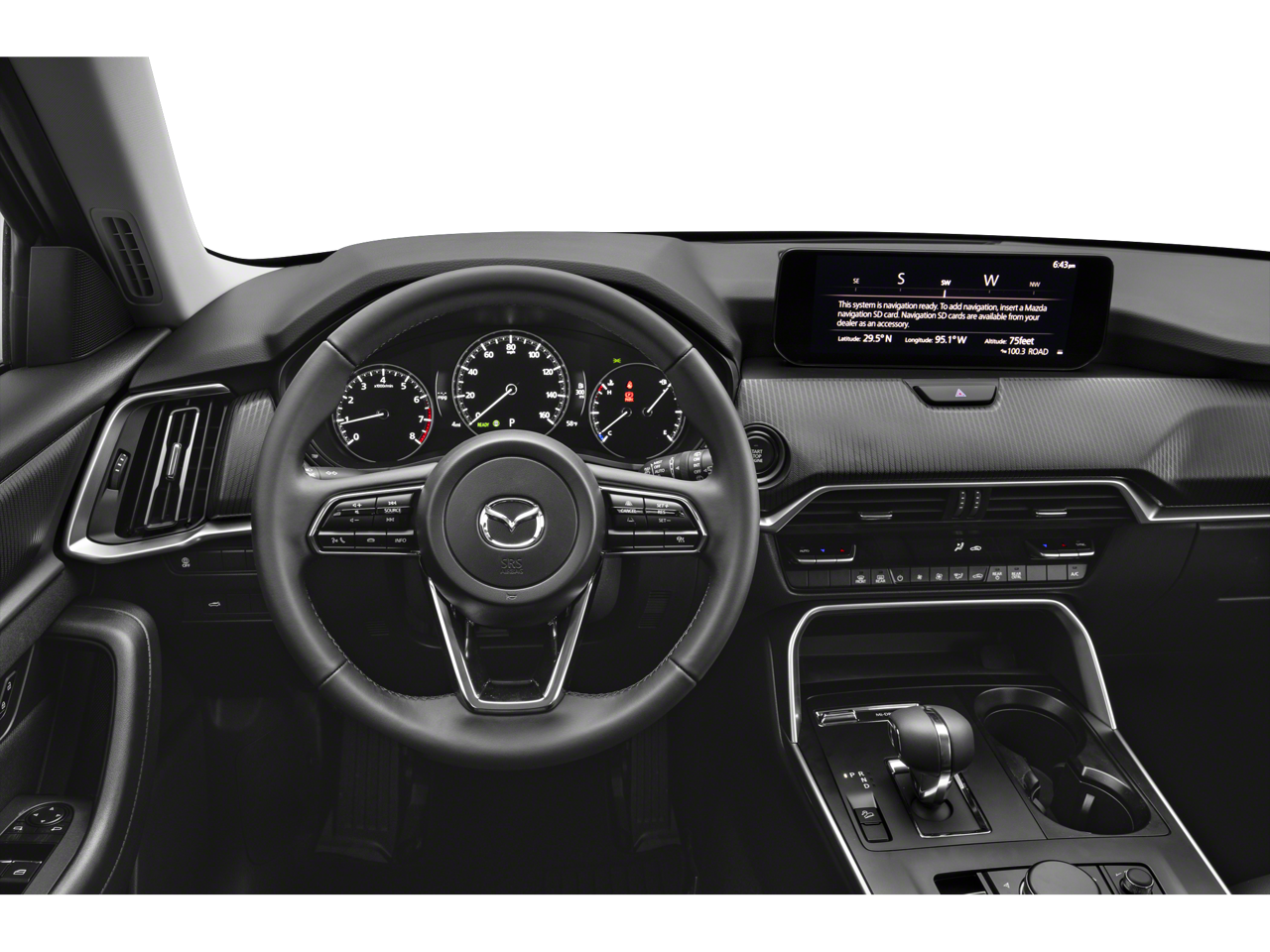 3.692 Axle Ratio, 3rd row seats: bench, 4-Wheel Disc Brakes, 8 Speakers, ABS brakes, Air Conditioning, Alloy wheels, AM/FM radio, AppLink/Apple CarPlay and Android Auto, Auto High-beam Headlights, Automatic temperature control, Brake assist, Bumpers: body-color, Compass, Delay-off headlights, Driver door bin, Driver vanity mirror, Dual front impact airbags, Dual front side impact airbags, E911 Automatic Emergency Notification, Electronic Stability Control, Emergency communication system: MAZDA CONNECT, Exterior Parking Camera Rear, Four wheel independent suspension, Front anti-roll bar, Front Bucket Seats, Front Center Armrest w/Storage, Front dual zone A/C, Front reading lights, Fully automatic headlights, Heated door mirrors, Illuminated entry, Infotainment System Voice Command, Knee airbag, Leather Shift Knob, Leather steering wheel, Leatherette Seat Trim, Low tire pressure warning, Mazda Connected Services, Occupant sensing airbag, Outside temperature display, Overhead airbag, Overhead console, Pandora Internet Radio Integration, Panic alarm, Passenger door bin, Passenger vanity mirror, Power door mirrors, Power driver seat, Power Liftgate, Power steering, Power windows, Radio Broadcast Data System Program Information, Radio data system, Radio: AM/FM Sound System, Rain sensing wipers, Rear air conditioning, Rear anti-roll bar, Rear reading lights, Rear seat center armrest, Rear window defroster, Rear window wiper, Remote keyless entry, SMS Text Msg Audio Delivery & Reply, Speed control, Speed-sensing steering, Split folding rear seat, Spoiler, Steering wheel mounted audio controls, Tachometer, Telescoping steering wheel, Tilt steering wheel, Traction control, Trip computer, Turn signal indicator mirrors, Variably intermittent wipers, and Wheels: 19 x 8.5J Aluminum Alloy.
