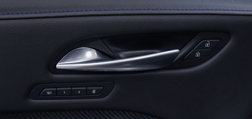 - Opens or closes when the system senses the key fob and the driver extends their foot under the left-hand side of the rear bumper over an image of the Cadillac Crest projected under the vehicle