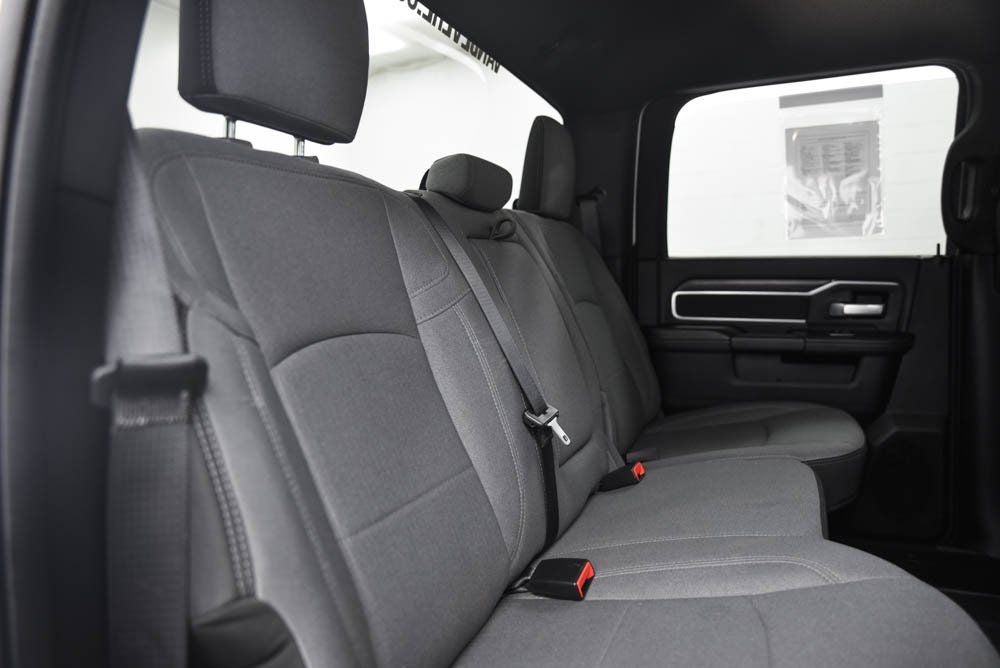 The exterior of this Ram 2500 Big Horn is equally impressive, with stylish chrome flat cab-length side steps, tow hooks, and a power 2-way driver lumbar adjust feature. The interior is equally well-appointed, with a premium cloth 40/20/40 bench seat, front center armrest with storage, and a center stack storage drawer for added convenience.